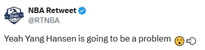 美媒NBA Retweet晒出杨瀚森的集锦,并夸赞道:“没错,杨瀚森将会成为一大威胁😮💨”